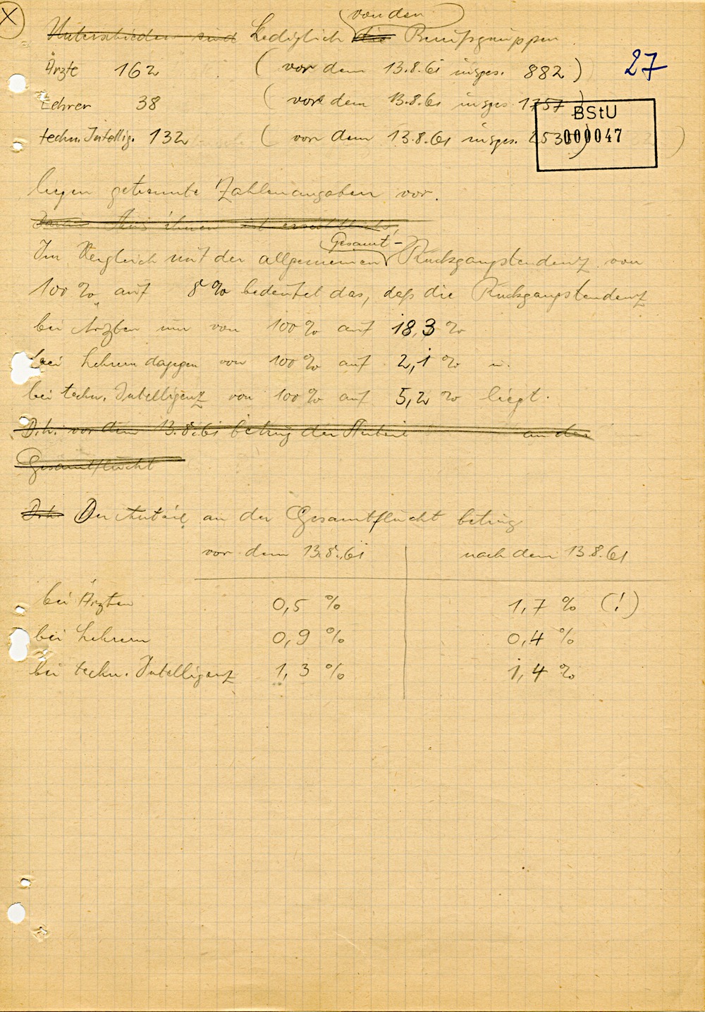 Hinzu kommen noch die nach dem 13.8.61 festgestellten Grenzdurchbrüche von 1.921 Personen, so daß für über 7.000 Personen kein exakter Nachweis erbracht werden kann, auf welche Art und Weise sie flüchtig wurden.