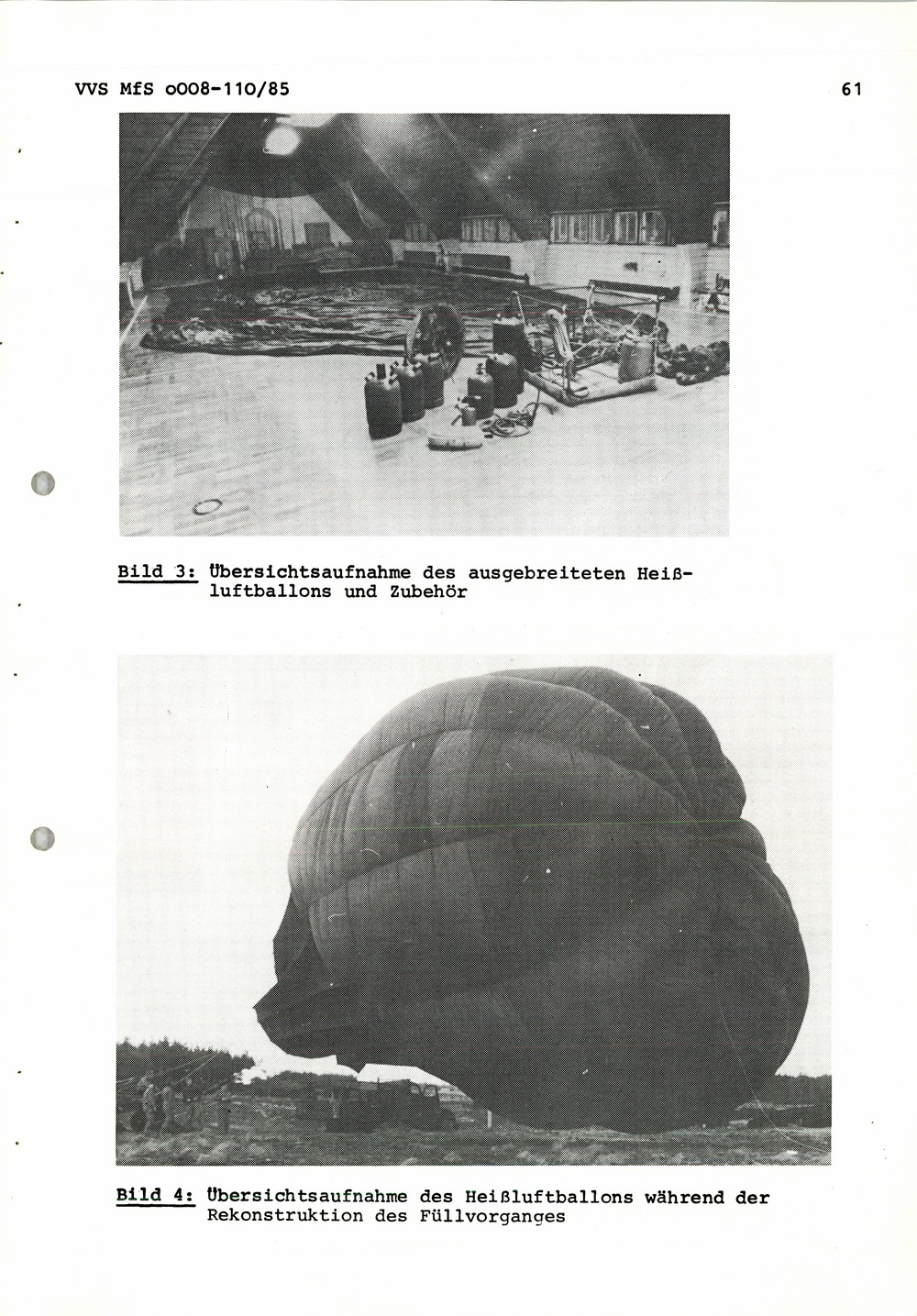 Um "Republikfluchten" besser verhindern zu können, dokumentierte das MfS geglückte und gescheiterte Fluchtversuche. Das vorliegende Dokument zeigt Ballons und andere selbstgebaute Fluggeräte, mit denen DDR-Bürger die Grenze nach Westen überwinden wollten.