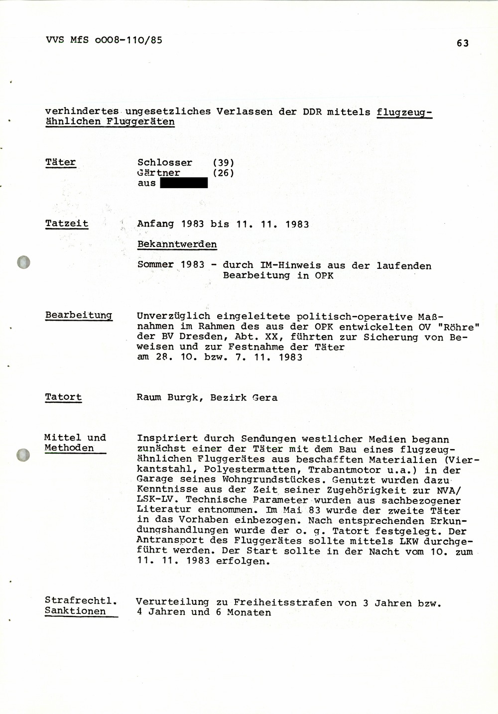 verhindertes ungesetzliches Verlassen der DDR mittels flugzeugähnlichen Fluggeräten