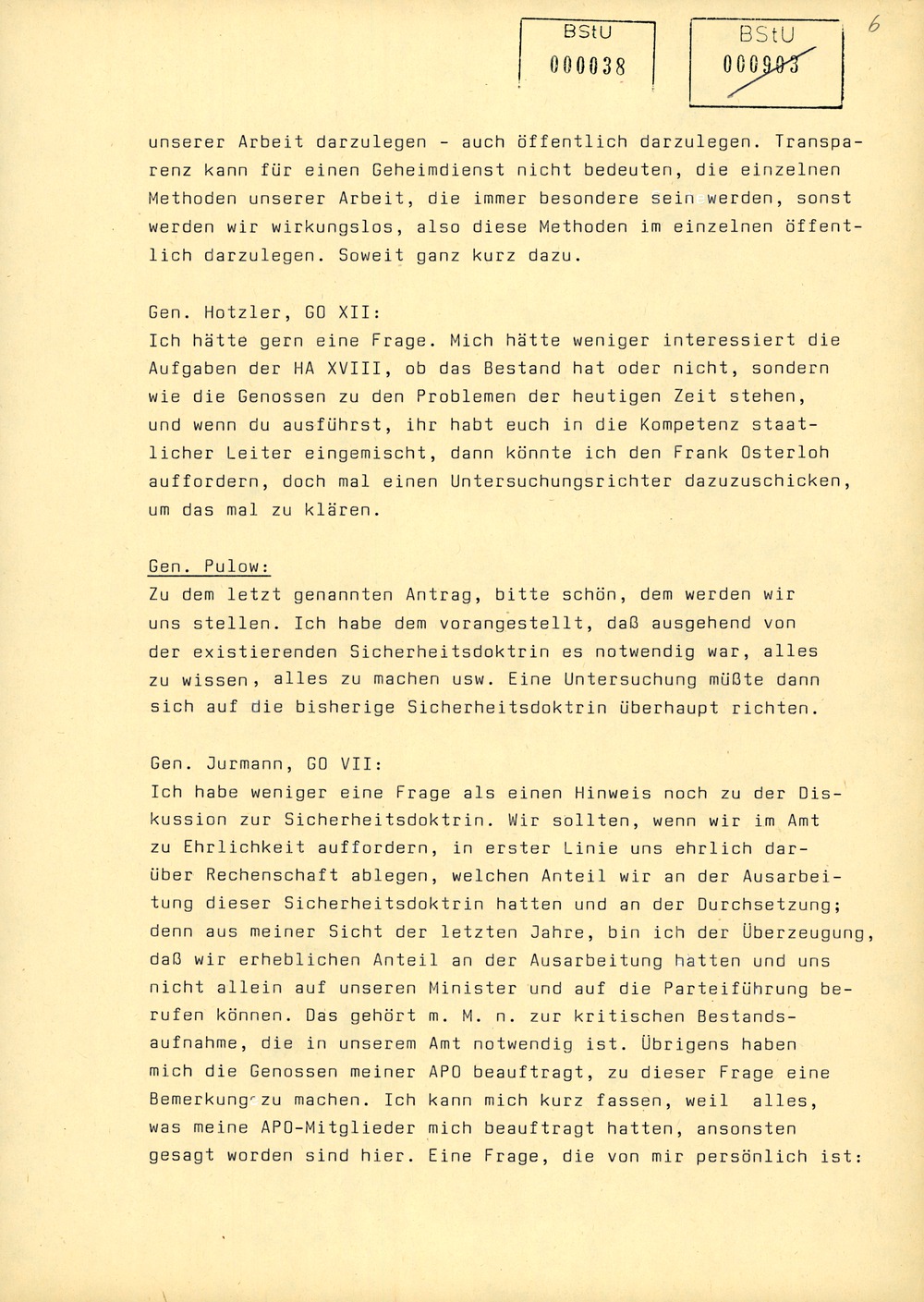 Ich hätte gern eine Frage. Mich hätte weniger interessiert die Aufgaben der HA XVIII, ob das Bestand hat oder nicht, sondern wie die Genossen zu den Problemen der heutigen Zeit stehen, und wenn du ausführst, ihr habt euch in die Kompetenz staatlicher Leiter eingemischt, dann könnte ich den Frank Osterloh auffordern, doch mal einen Untersuchungsrichter dazuzuschicken, um das mal zu klären.