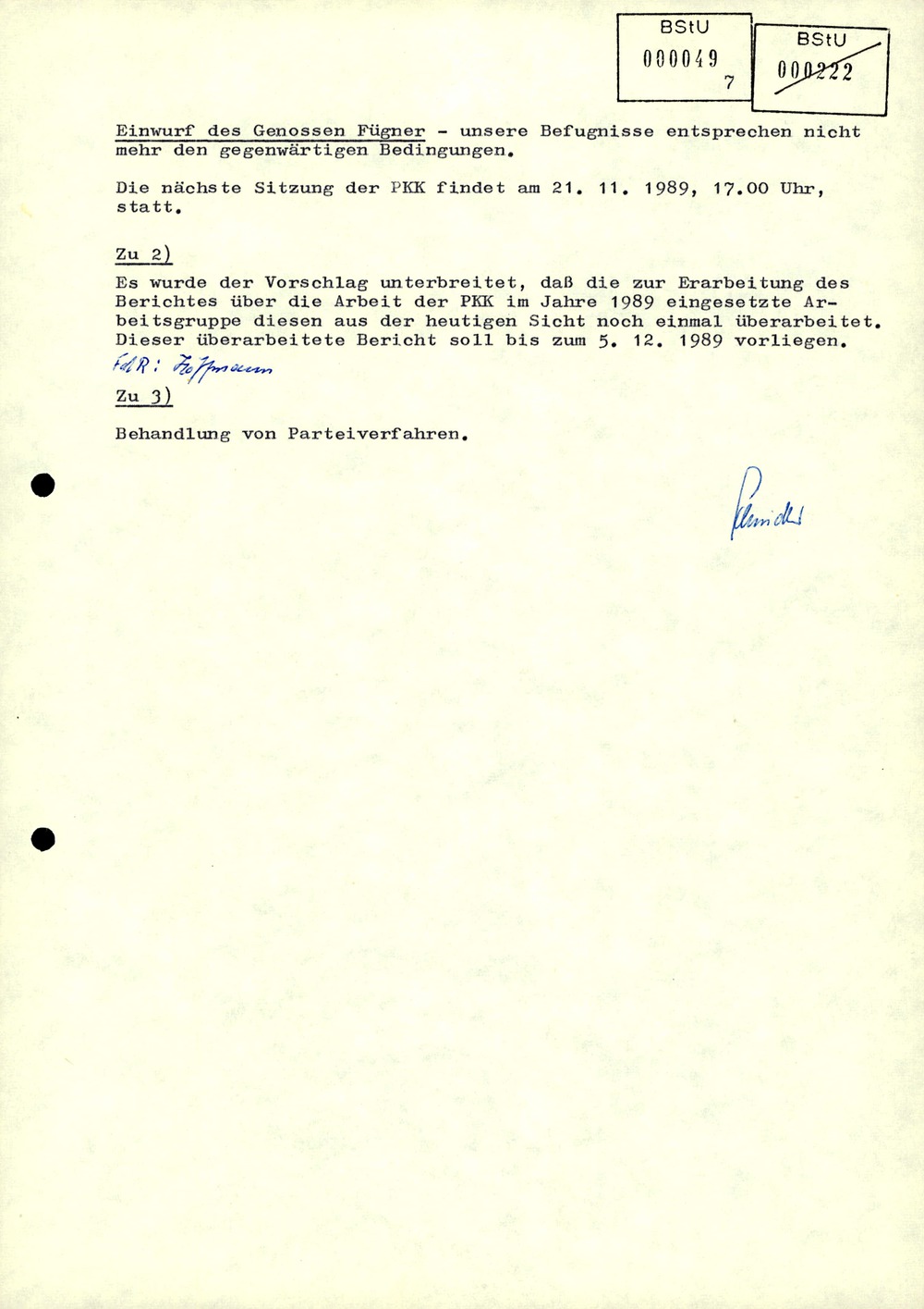 Die nächste Sitzung der PKK findet am 21.11.1989, 17.00 Uhr, statt.
